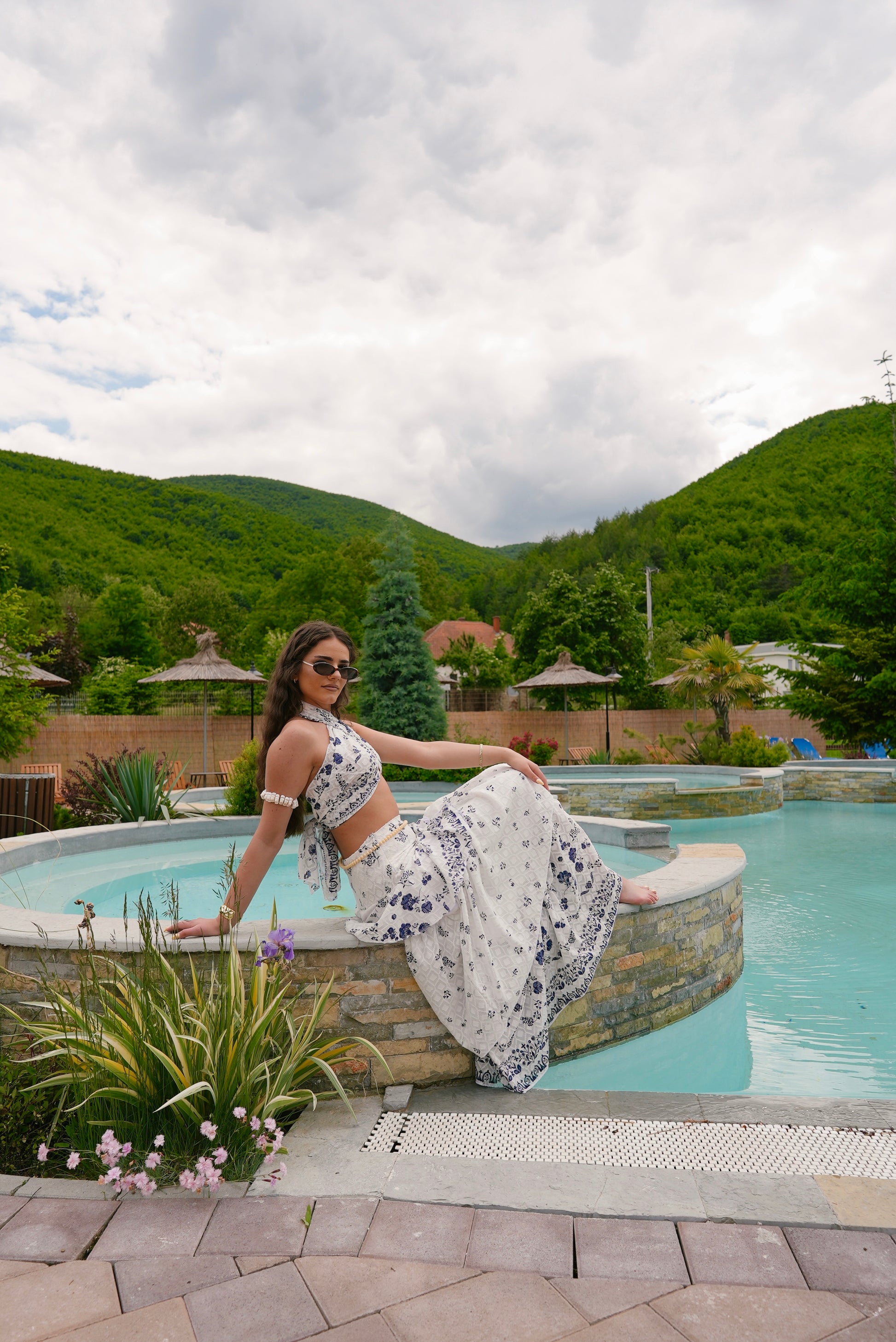L'ensemble Mykonos allie polyvalence et élégance. Son foulard se transforme en haut court chic, vous permettant de créer facilement de multiples looks élégants. Associé à une jupe longue et fluide à fermeture éclair pratique, cet ensemble allie confort et raffinement pour une tenue résolument unique.